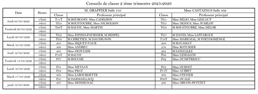 Conseils de classe du 2ème trimestreLycée Saint-John Perseil y a 23 heures1 min de lectureconseil de classe 2 trimestre 2025-2026-1.pdfTélécharger PDF • 40KBPour les classes de 2nde - Début des procédures d'orientation